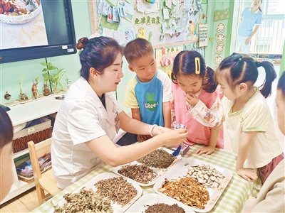 6月4日,市实验幼儿园邀请家长入园开展“识中药 制香囊”家长助教活动。王 菁 摄