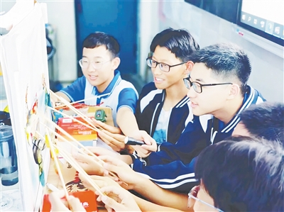 近日,漯河五高开展美术鉴赏活动。图为学生操作皮影,感受皮影戏的魅力。李 齐 摄