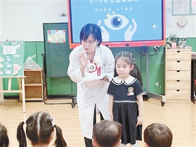 近日,市市直幼儿园邀请市妇幼保健院儿童保健科主治医师刘怡闻向小朋友讲解爱眼护眼知识。