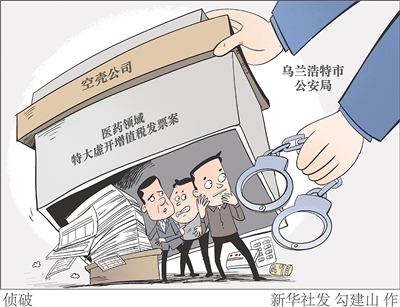 新华社记者从内蒙古自治区兴安盟乌兰浩特市公安局获悉,办案民警日前侦破一起医药领域特大虚开增值税发票案,涉案金额达50亿元,32名犯罪嫌疑人被抓获。 新华社发 勾建山 作