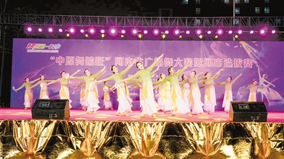 8月20日晚,由市委宣传部指导,市文广旅局、郾城区人民政府主办,市文化馆承办的“中原舞翩跹”河南省广场舞大赛漯河市选拔赛在黄河广场举行。来自各县区的16支优秀舞蹈队300多名广场舞爱好者同台献艺,为现场观众带来一场精彩的视觉盛宴。本报记者 齐国霞 摄