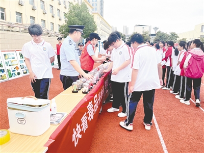 九月十一日,在郾城实验高中,团市委、河南省第二强制隔离戒毒所联合开展禁毒知识进校园活动。