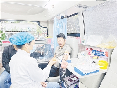 9月17日,市民在市区交通路与马路街交叉口的流动献血车上献血。记者从市中心血站了解到,9月14日至17日上午,我市共162人献全血,献血量达6.3万毫升。见习记者 张 赢 摄