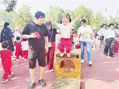 9月29日,郾城区实验幼儿园开展亲子游戏体验活动。