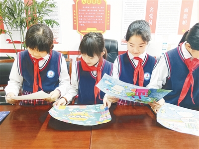 ←9月15日至25日,郾城东街小学开展了科普日系列活动。图为学生在欣赏科普知识手抄报。