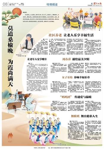 近年来,我市在尊老、爱老、助老方面做了很多工作,并取得了一定成效。为让老年人老有所养、老有所依,我市发挥社会力量和市场机制作用,依托社区,发展以居家为基础的多样化养老服务,扩大养老服务供给,提供更有力度、更有温度的养老服务。为让老年人在家门口吃上营养丰富、价格实惠的放心餐,我市汇聚多方力量,在月湾湖社区、汾河路社区等建设共享食堂,不断满足社区老年人的就餐需求。为丰富老年人的文化生活,我市各个社区、养老机构不定时举办各种活动,为老年人献上精彩纷呈的文化盛宴。