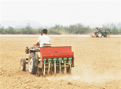 10月13日,在市城乡一体化示范区黑龙潭镇何庄村,农机手正在播种小麦。本报记者 范子恒 摄