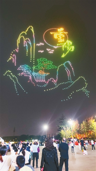 10月12日晚,我市举办了以“爱老敬老 幸福漯河”为主题的无人机表演,旨在大力弘扬“孝亲敬老”传统美德,积极营造全社会尊老、敬老、爱老、助老的良好氛围。本报记者 张玲玲 摄