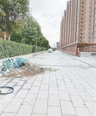 湘江东路与燕山南路交叉口向东约50米路南,渣土未及时清理。