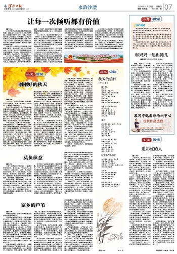 转眼已是深秋,家乡的芦苇那雪白的芦花也该随风飘荡了。