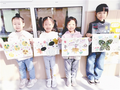 10月23日,郾城区实验幼儿园以“时逢霜降 趣满深秋”为主题开展了丰富多彩的霜降节气系列活动。图为孩子们展示自己制作的树叶贴画。本报记者 尹晓玉 摄