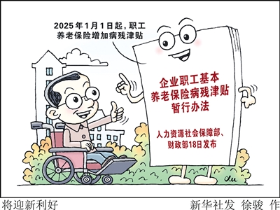 人力资源社会保障部、财政部日前发布《企业职工基本养老保险病残津贴暂行办法》。该办法明确,自2025年1月1日起,企业职工基本养老保险参保人员达到法定退休年龄前,因病或者非因工致残经鉴定为完全丧失劳动能力的,可以申请按月领取病残津贴。 新华社发 徐 骏 作