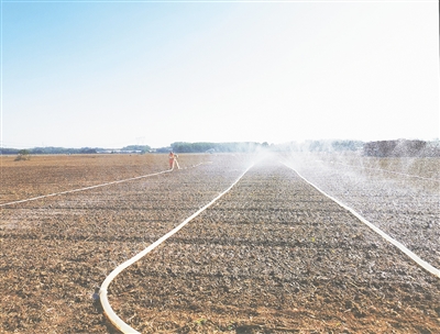 10月26日,市城乡一体化示范区黑龙潭镇生杨村村民在浇灌麦田,以保墒促苗。