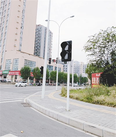 长江路与王屋山路交叉口西南角,交通信号灯异常。