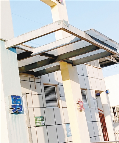 龙江东路与许慎路交叉口向西约270米路北,公共厕所顶棚玻璃破损。