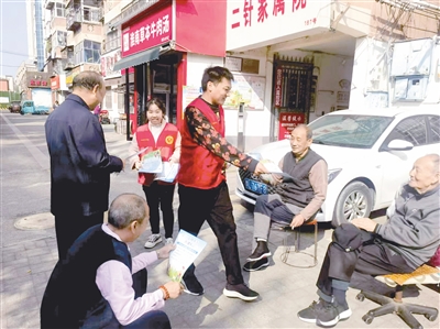 10月25日,源汇区顺河街街道建西社区志愿者在辖区开展文明养犬宣传。本报记者 齐国霞 摄
