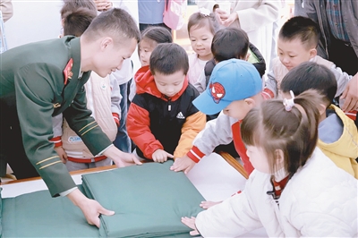 近日,市实验幼儿园中五班的萌娃在家委会的组织下走进武警漯河支队,开展社会实践活动。王春蕾 摄