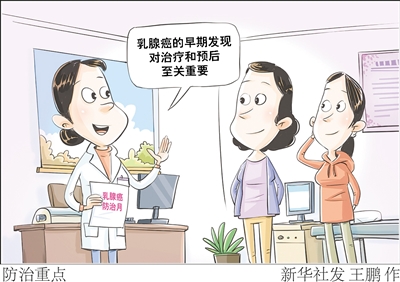 世界卫生组织将每年10月确定为乳腺癌防治月。乳腺癌是全球高发的恶性肿瘤,其发病率居女性恶性肿瘤首位,被称为“红颜杀手”。乳腺癌的早期发现对治疗和预后至关重要。 新华社发