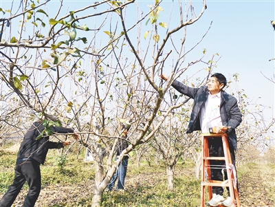 11月21日,舞阳县文峰乡张集村村民在为梨树剪枝,做好梨树冬季管护工作。冬季是梨树管护的关键期,对来年梨树的产量和果子品质有着重要影响。本报记者 范子恒 摄