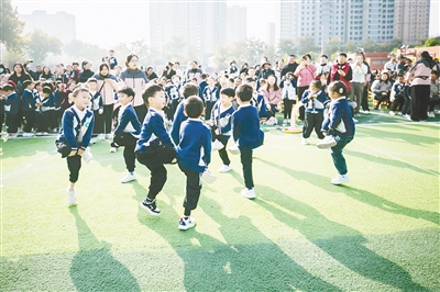 ②11月22日,太行山路幼儿园将传统民间游戏和现代体育活动巧妙融合,为孩子们举行了一场别样的趣味运动会。刘红爽 摄