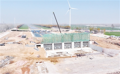 ← 12月2日,位于临颍县344国道颍河大桥南200米处的颍河杜曲闸正在加紧施工。杜曲闸是临颍县引澧入颍项目重要节点工程,总投资4554万元,预计12月底完工。项目建成后既能拦蓄颍河径流及引澧入颍水源进行农田灌溉并回补地下水,又能在汛期对颍河上游来水进行调控,具有显著的经济效益和社会效益。本报记者 王嘉明 摄