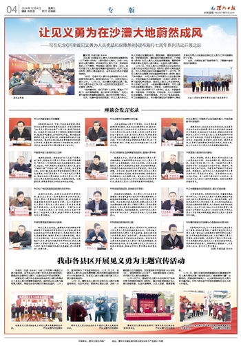 市委宣传部三级调研员王立新: 选树先进典型。持续推进“好人之城”“志愿之城”建设,坚持把见义勇为人员纳入漯河市道德模范、“漯河好人”评选范围,组织先进典型进学校、进社区、进企业。同时,积极向上级推荐见义勇为人员,参与“河南好人榜”“中国好人榜”上榜人员评选。加大宣传力度。利用广播、电视、报刊等宣传报道见义勇为人员先进事迹 |
