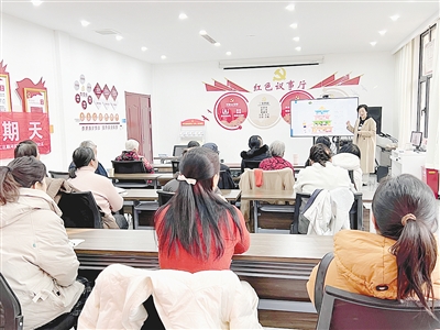 → 12月17日下午,顺河街街道泰山中路社区举办家政课堂,为辖区居民讲解膳食营养和饮食搭配知识。