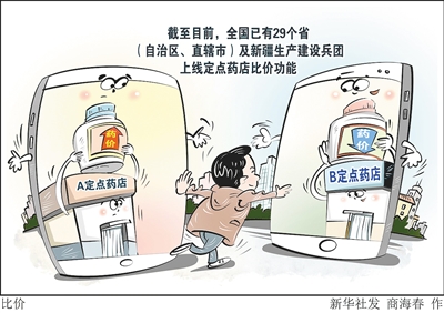 记者2月20日从国家医保局获悉,截至目前,全国已有29个省(自治区、直辖市)及新疆生产建设兵团上线定点药店比价功能,可实现药品价格在手机上一键查询、实时比对和位置导航等。新华社发