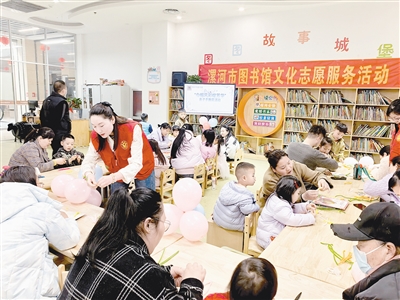 市图书馆志愿者指导孩子们制作手腕花。3月8日,市图书馆举办了一场别开生面的亲子手工活动。本报记者 齐国霞 摄