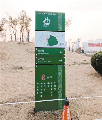 九龙山路与长江路交叉口,漯河乐道牌子上部分内容缺失。