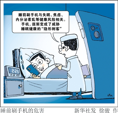 手机已成为人们生活中不可或缺的工具,但随之而来的睡眠问题也愈发严峻。医学专家表示,睡前刷手机与失眠、焦虑、内分泌紊乱等健康风险相关。手机已逐渐变成了威胁睡眠健康的“隐形刺客”。 新华社发
