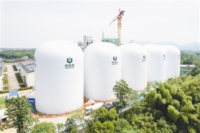 这是5月6日在中储粮长沙直属库拍摄的气膜粮仓建设施工现场(无人机照片)。