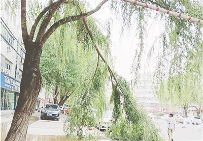 辽河路与巴山路交叉口向西约30米路北,行道树树枝折断。