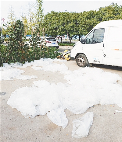 中山北路与牡丹江路交叉口向南约230米路西,废弃塑料袋无人清理。