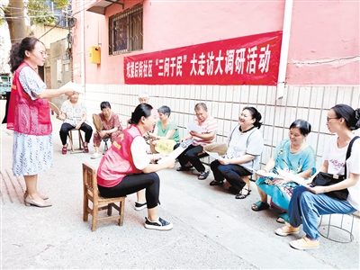 8月26日,源汇区顺河街街道戏楼后街社区工作人员在辖区开展“三问于民”大走访大调研活动。本报记者 孙 震 摄