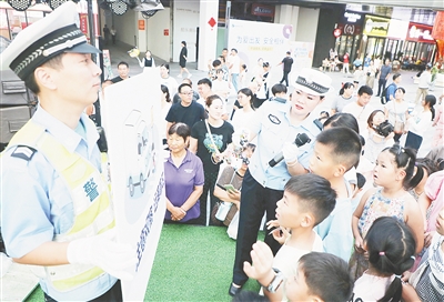 8月31日下午,市公安局交通管理支队第六执勤大队联合电动车销售企业,在西城区万达广场举行交通安全宣传教育活动。整场活动集互动性、趣味性与教育性于一体,吸引众多市民参与。本报记者 范子恒 摄
