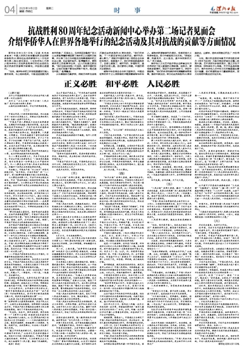 抗战胜利80周年纪念活动新闻中心举办第二场记者见面会 介绍华侨华人在世界各地举行的纪念活动及其对抗战的贡献等方面情况