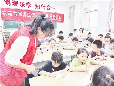 9月9日,源汇区顺河街街道东大街社区工作人员到辖区小学开展教师节主题活动。本报记者 孙 震 摄