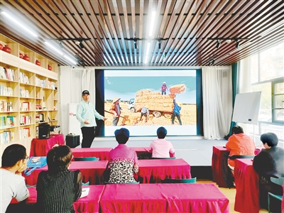9月20日,市摄影家协会、市巾帼志愿者协会、郾城区沙北街道海河社居委主办的公益摄影课在沙北街道海河社区阳光世纪苑日间照料中心开讲。市摄影家协会名誉主席栾根成主讲。近30名社区居民参加。本报记者 孙 震 摄