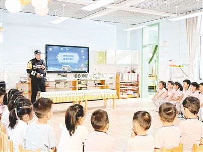 近日,市实验幼儿园大四班组织开展“特警进课堂”家长助教活动,增强幼儿自我保护意识,实现家园协同护平安。贾婉霞 摄