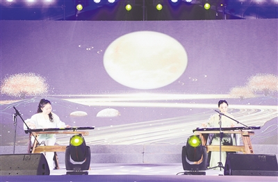 在第三篇章“国潮中秋·乐享非遗”中,漯河市第二高级中学学子率先表演古筝演奏《采薇》。悠扬的筝声流淌在广场夜空,时而轻柔如月光洒地,时而婉转似秋风拂叶。