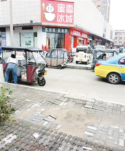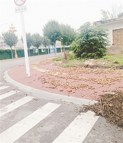 学府路与樟江东路交叉口,人行道有废弃芝麻秆、玉米芯等。