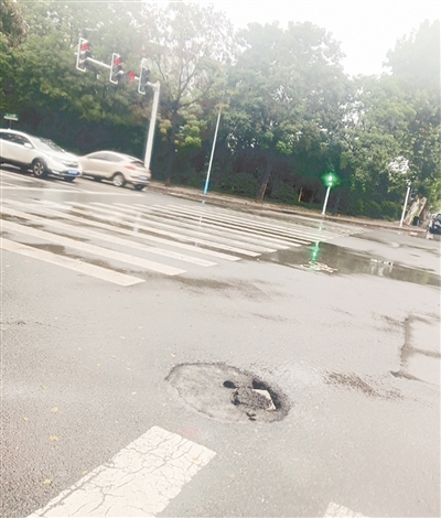 黄山支一路与泰山北路交叉口西南角,路面轻微塌陷。