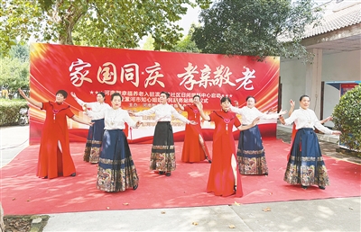 10月14日,河南智幸福养老入驻滨河路社区日间照料中心启动仪式暨漯河市知心姐姐爱民服务站揭牌仪式举行。图为文艺表演。