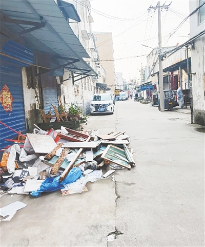 石槽赵街与舟山路交叉口向西约80米路南,杂物乱堆。