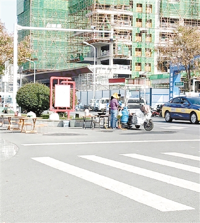 宝塔山路与长江路交叉口向北约40米路西,有人占道经营。