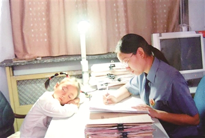 快速结案的背后是无数个深夜的坚守。为了履行职责,她很少休假,休过时间最长的假是三个月的产假。在她的手机里,珍藏着一张拍摄于二十多年前的老照片,那是她公诉生涯最真实的缩影:深夜的办公室格外安静,六岁的女儿早已耐不住困倦趴在桌子上睡着了,蒲红迎的身影则定格在灯下,被卷宗包围。