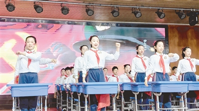 上图:10月28日,郾城小学举办了“卓尔不凡,舞动童年”班级课桌舞大赛。曹晶杰 摄