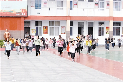 左下:10月28日上午,郾城区向阳小学开展了防震减灾应急疏散演练。杨晓娜 摄