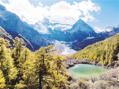 时下,稻城亚丁景区已进入最佳观赏期。稻城亚丁景区是国家5A级旅游景区,属亚丁国家级自然保护区,2003年7月由联合国教科文组织批准设立亚丁世界生物圈保护区。图为10月26日,仙乃日雪山下的湖泊卓玛拉措掩映在彩林中。新华社发